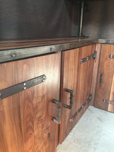 The Singer Project was a custom entertainment cabinet commissioned by Rick Singer. I chose to make the body from black American walnut. The shelving is made out of steel tubing with cast cranks and gears that raise or lower the shelves. The whole project took 4 months to create. All hardware was made by hand and includes cast iron, cast bronze, blacksmithing and steel fabrication.